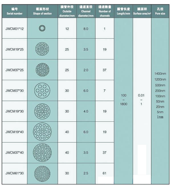 膜組件是裝配陶瓷膜元件的耐壓殼體,根據工業生產需要可以通過不同規格的膜組件殼體實現不同外徑、不同面積的陶瓷膜元件的集中裝填。單套膜組件裝填膜面積為0.02m2至22m2不等。膜組件的外形設計、密封設計等對陶瓷膜成套系統的運行至關重要。